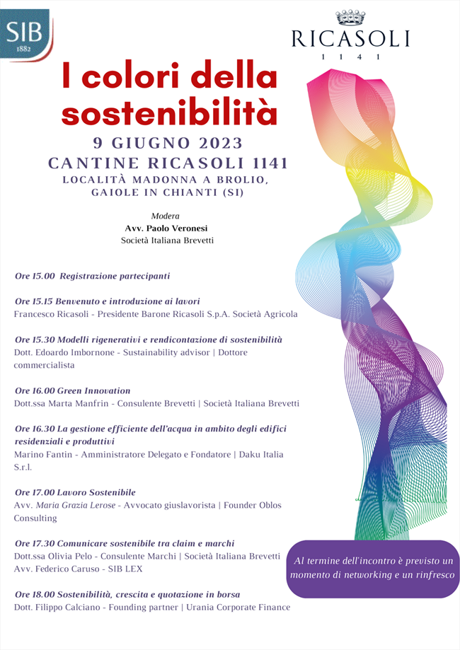 [:it]Il 9 giugno 2023 invitiamo imprese e professionisti all’evento “I colori della sostenibilità”, organizzato in collaborazione con Barone Ricasoli e che si svolgerà presso la magnifica cantina dell’azienda a Gaiole in Chianti (Siena) in località Madonna a Brolio.